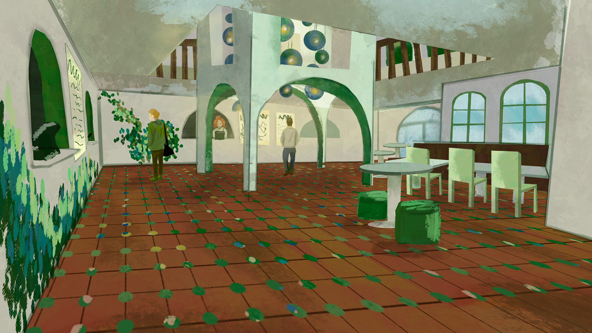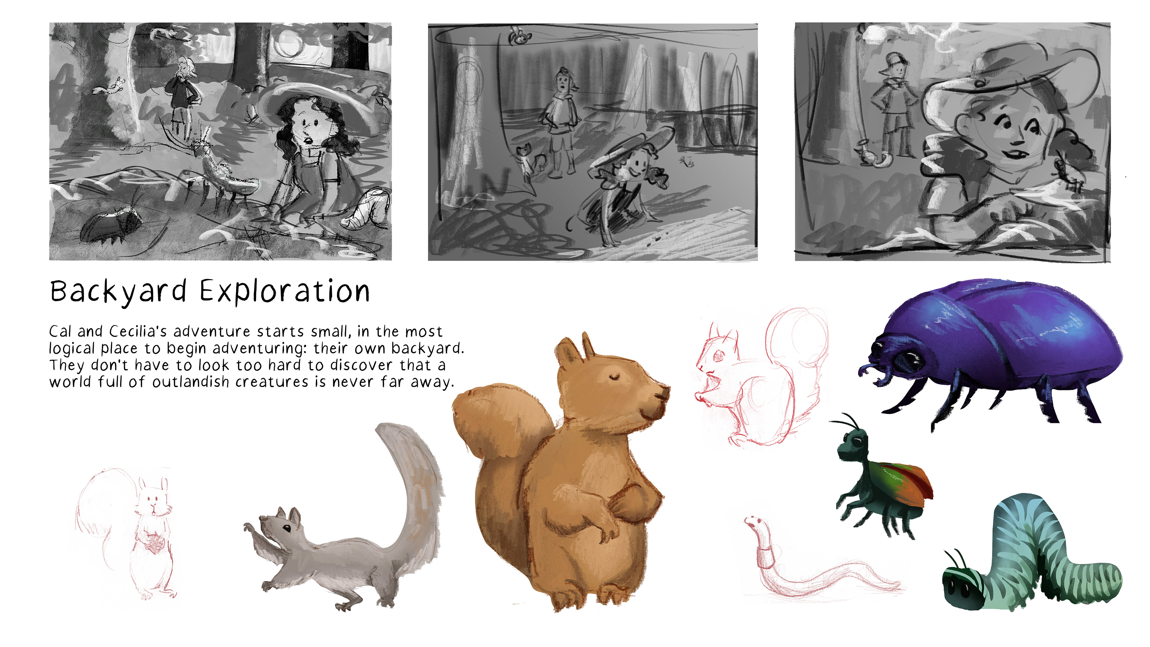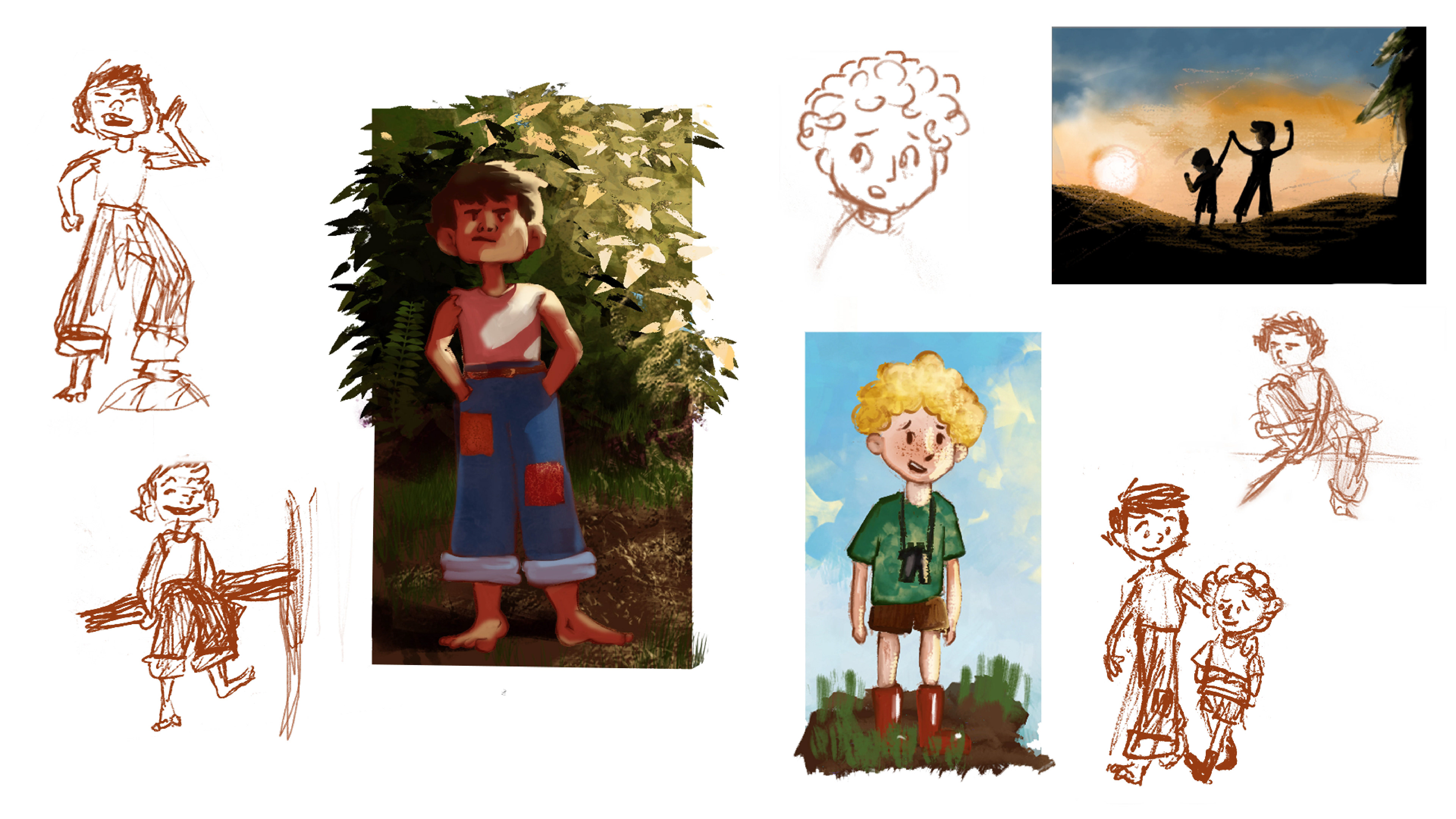 This is some of my work for the 2025-26 Walt Disney Imagineering’s Imaginations Design Competition, including environment paintings based on teammates' architectural designs, and characters. Our project was designing a student union building for our school that would build community and meet all kinds of needs, but with a magical twist!