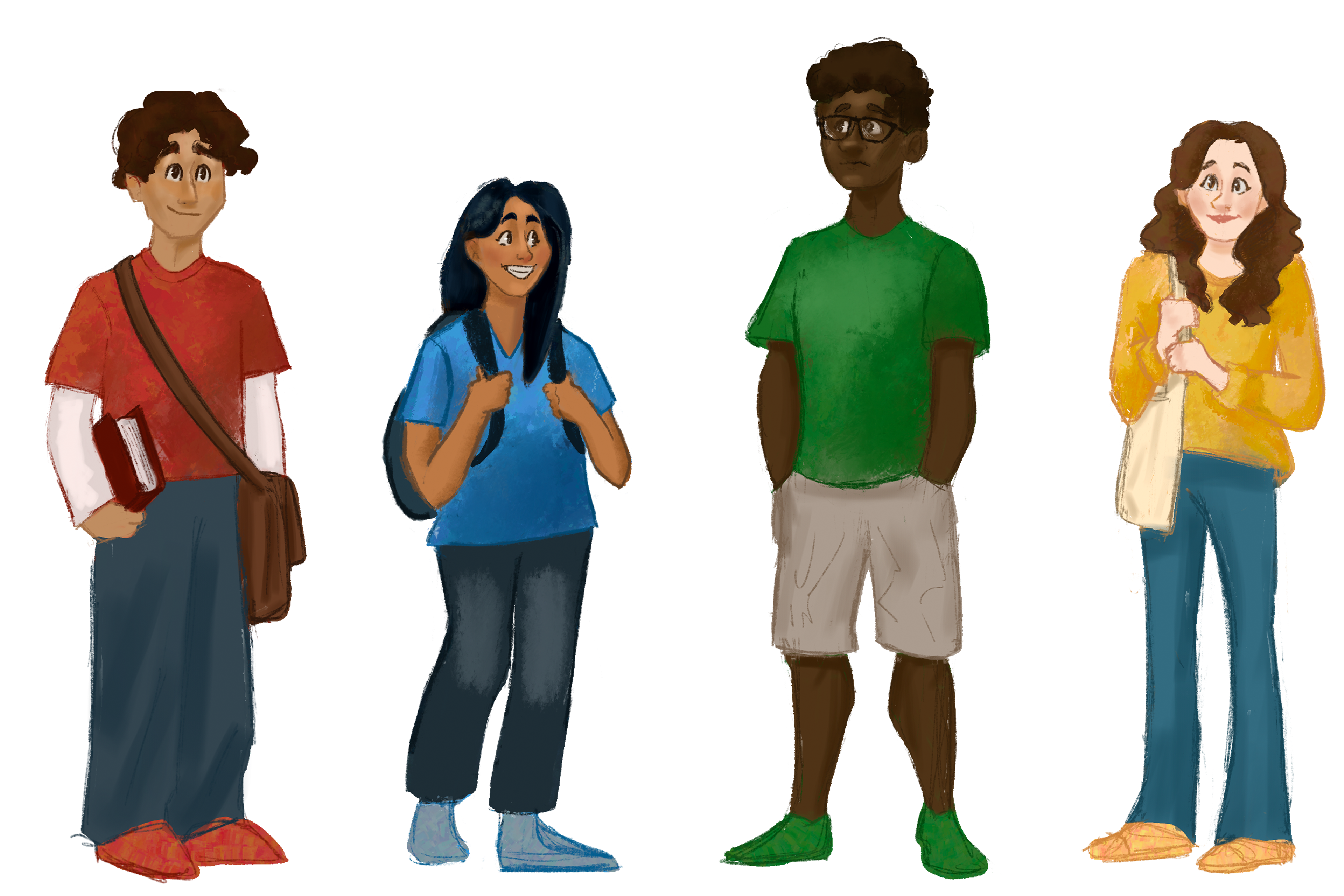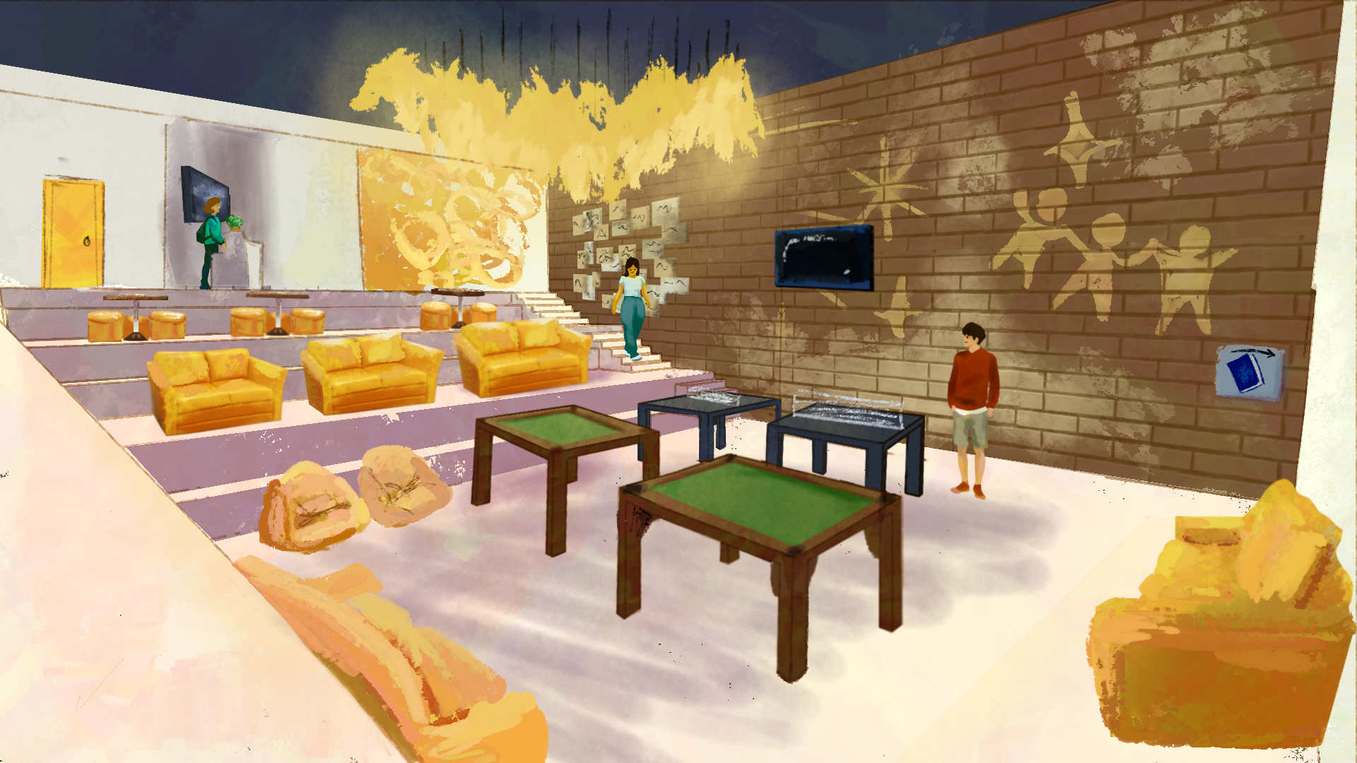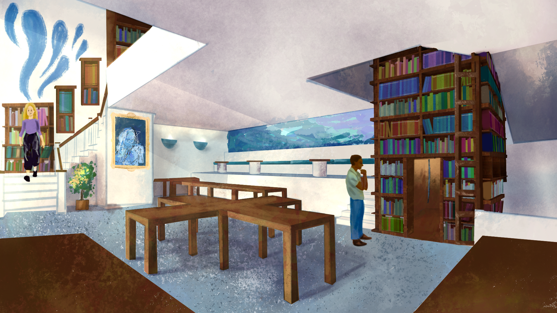 This is some of my work for the 2025-26 Walt Disney Imagineering’s Imaginations Design Competition, including environment paintings based on teammates' architectural designs, and characters. Our project was designing a student union building for our school that would build community and meet all kinds of needs, but with a magical twist!