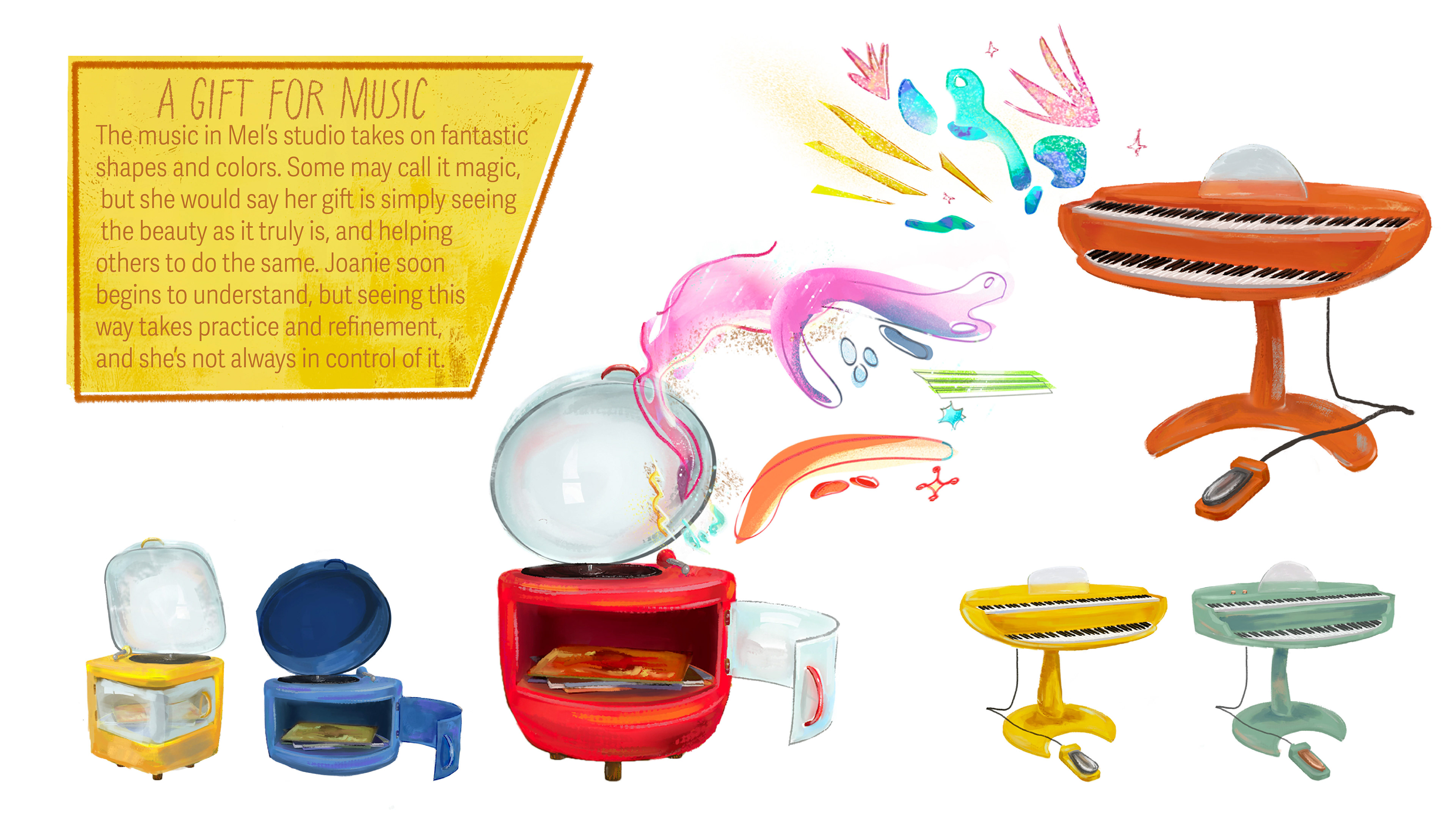 This is a personal visual development project about a girl who discovers a mysterious bus full of music and magic, and a unique dj who curates the collection!